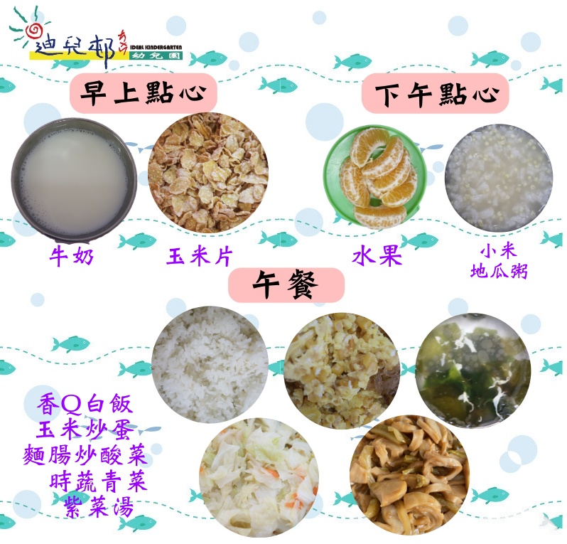 香Q白飯 玉米炒蛋 麵腸炒酸菜 時蔬青菜 紫菜湯